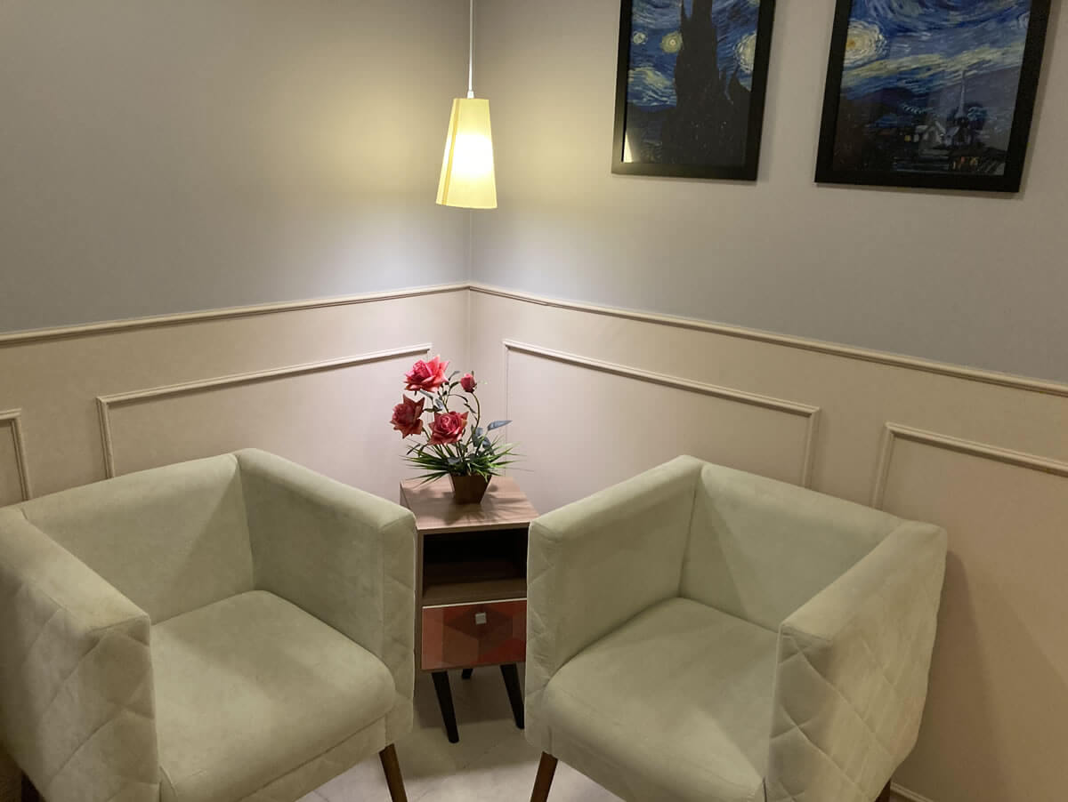 Como irá se sentir em um ambiente que não acolhe, que traz frieza, que tem dezenas de pessoas na recepção e nada para ajudar a se sentir mais calmo?
